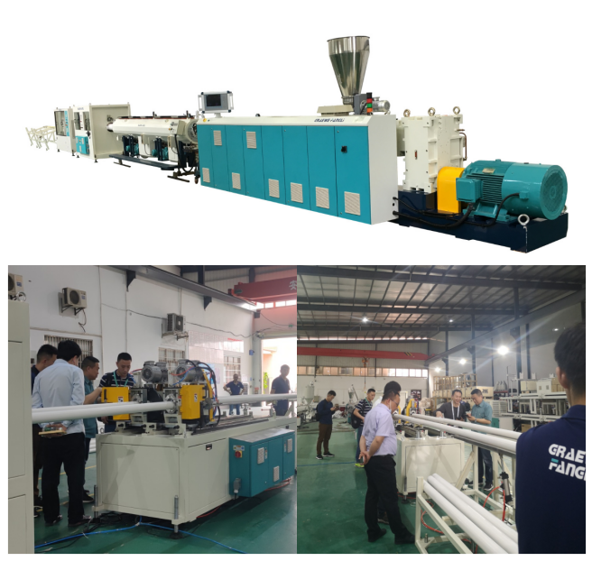 பீப்பாயில், திட பாலிமர் (PVC) மற்றும் அதன் சேர்க்கைகள் பாயும் பகுதி, முன்கூட்டியே சூடேற்றப்பட்டு, சுருக்கப்பட்ட பகுதி திடமான கடத்தும் மண்டலமாக வரையறுக்கப்படுகிறது. முதலாவதாக, திடமான பாலிமர் துகள்கள் ஹாப்பரிலிருந்து பீப்பாயில் ஓட்டம் ஈர்ப்பு விசையால் அடையப்படுகிறது. திருகு சுழலும் போது, ஹாப்பரில் உள்ள துகள்கள் தொடர்ந்து பாயும் போது, துகள்கள் இறக்கும் தலையை நோக்கி அனுப்பப்படுகின்றன. திடமான கடத்தும் மண்டலத்தில் (Barrel C1 மண்டலம்), PVC பொருளில் உள்ள பெரிய மூலக்கூறுகள், சிறிய மூலக்கூறுகள் மற்றும் பிற துகள்கள் படிப்படியாக வெப்பமடைகின்றன. அதே சமயம், திருகு வெட்டு மற்றும் துகள்களுக்கு இடையே உராய்வு ஆகியவை துகள்களின் வெப்பத்தை அதிகரிக்கின்றன, அவை முழுமையாக தொடர்பு கொள்ளவும், பரவவும், மற்றும் கச்சிதமான நிலையில் ஊடுருவவும் அனுமதிக்கிறது.