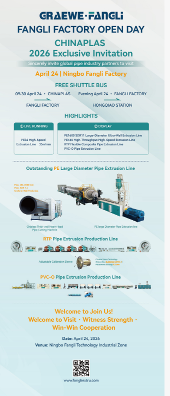 ஏப்ரல் 21 முதல் 24 வரை CHINAPLAS 2026 இல், சாவடி 7.1C14 இல் Fangli Technology ஐப் பார்வையிடவும். பிளாஸ்டிக் குழாய் உபகரணங்களில் புதுமை மற்றும் எதிர்கால ஒத்துழைப்பை ஒன்றாக ஆராய்வோம்!