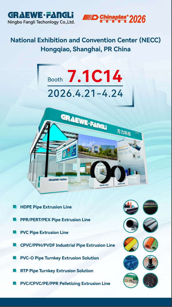 मराठी ChinaPlas 2026 இல் எங்கள் சாவடி 7.1C14 க்கு வரவேற்கிறோம்,நிங்போ ஃபாங்லி டெக்னாலஜி கோ., லிமிடெட்.(இனி "ஃபாங்லி" என்று குறிப்பிடப்படுகிறது) R&D, உற்பத்தி மற்றும் விற்பனையில் நிபுணத்துவம் பெற்றதுபிளாஸ்டிக் வெளியேற்ற உபகரணங்கள், புதிய சுற்றுச்சூழல் பாதுகாப்பு உற்பத்தி வரிகள், பிளாஸ்டிக் குழாய் வெல்டிங் இயந்திரங்கள் மற்றும் பிளாஸ்டிக் துணை இயந்திரங்கள்.